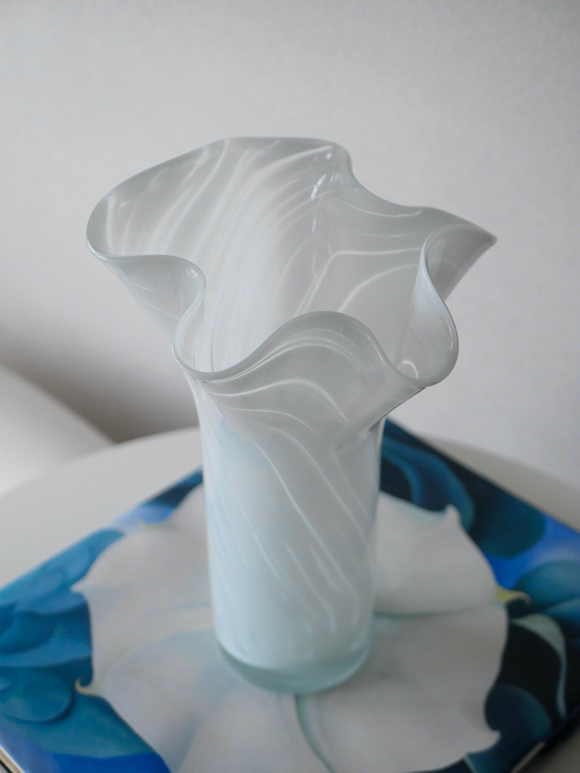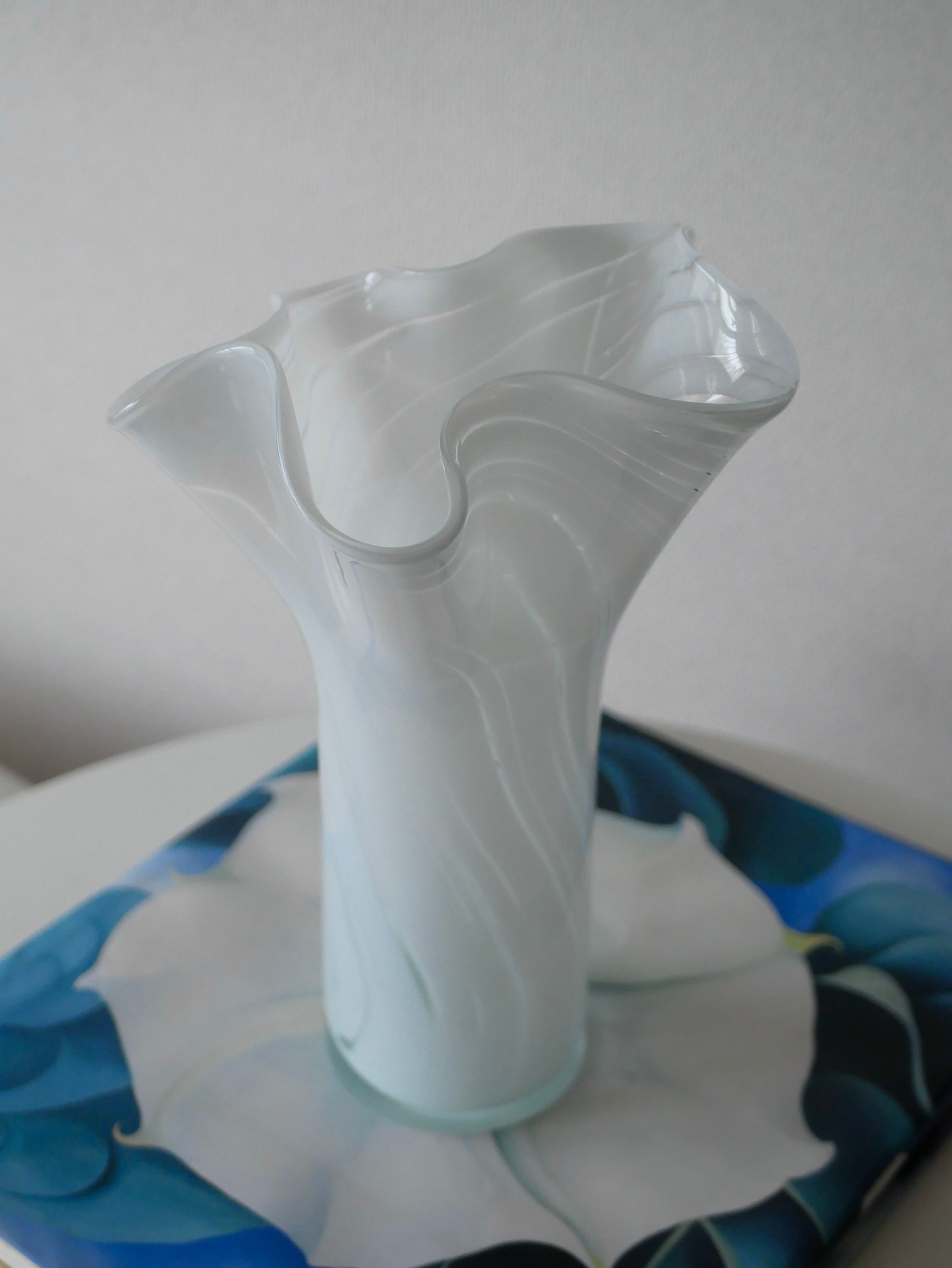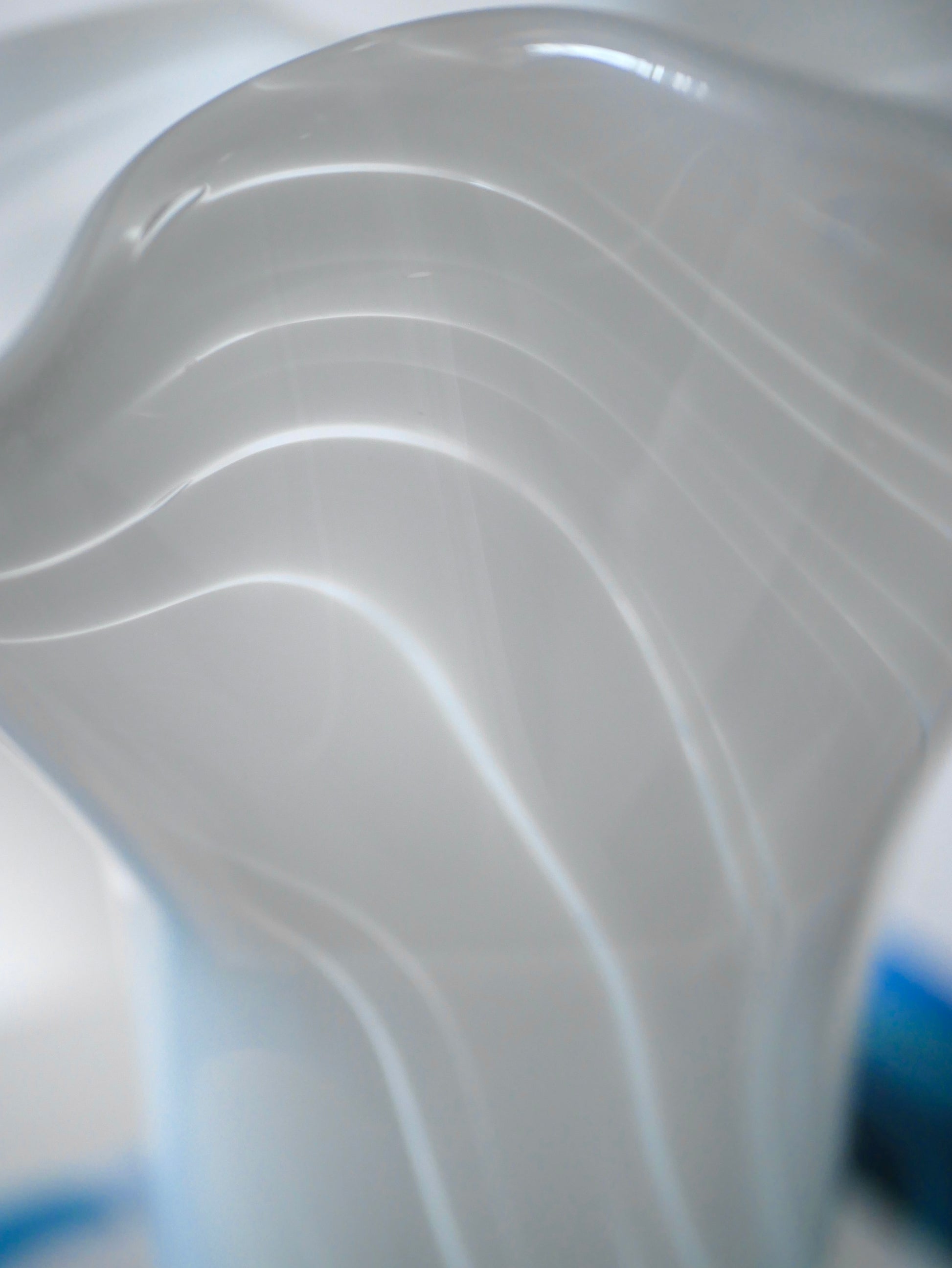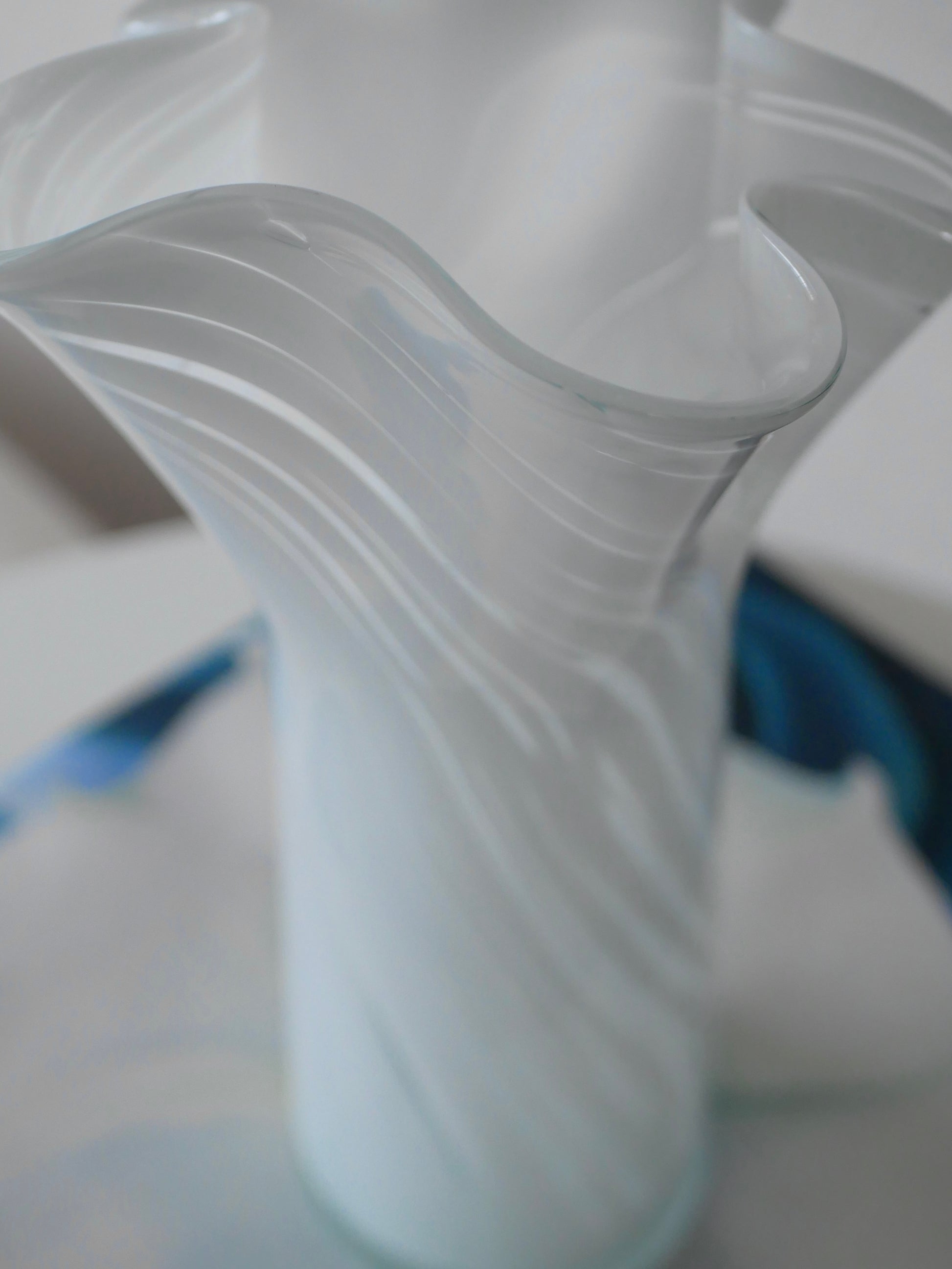 底の方は水色がかったガラスで、白とクリアのマーブル