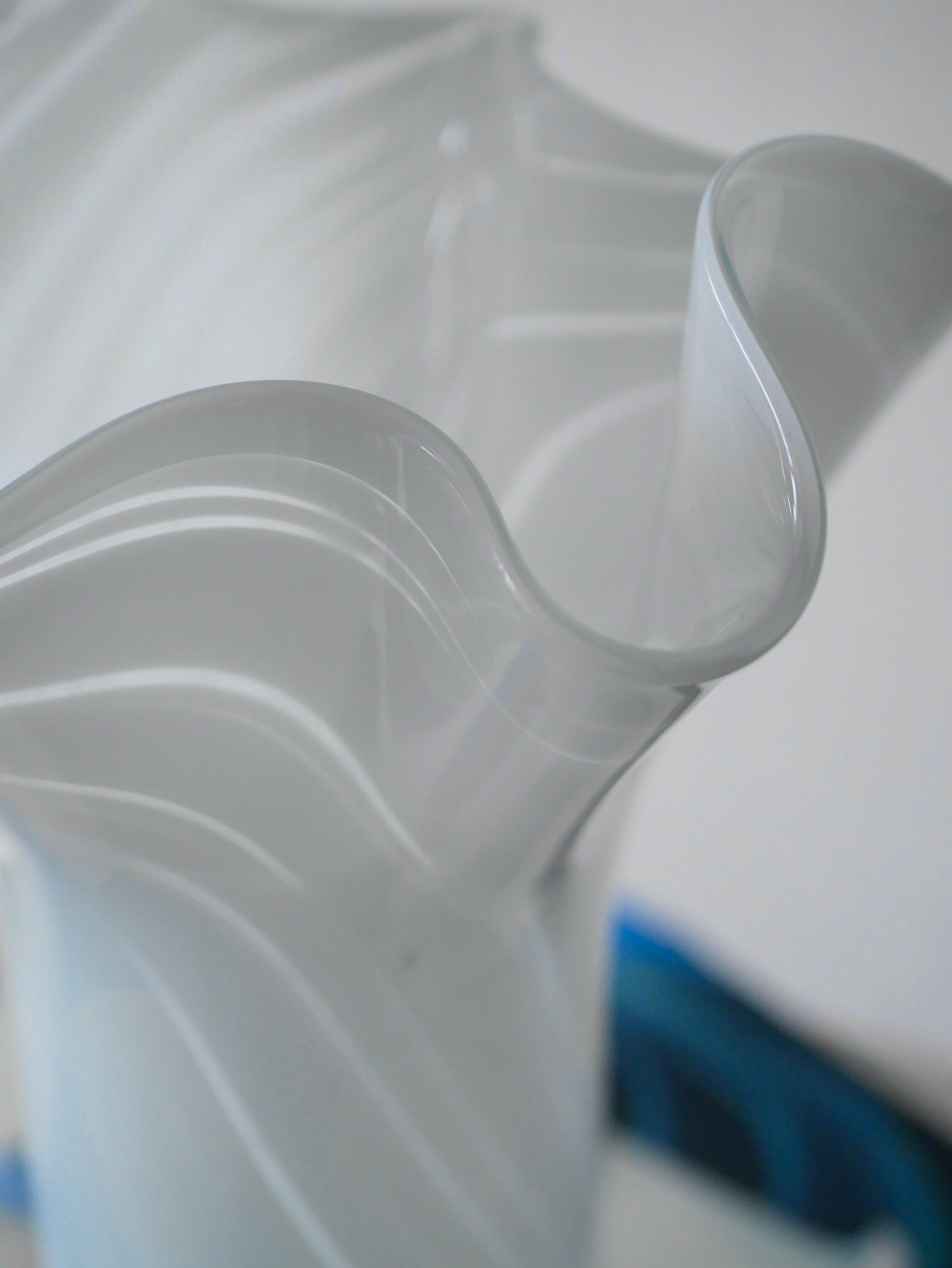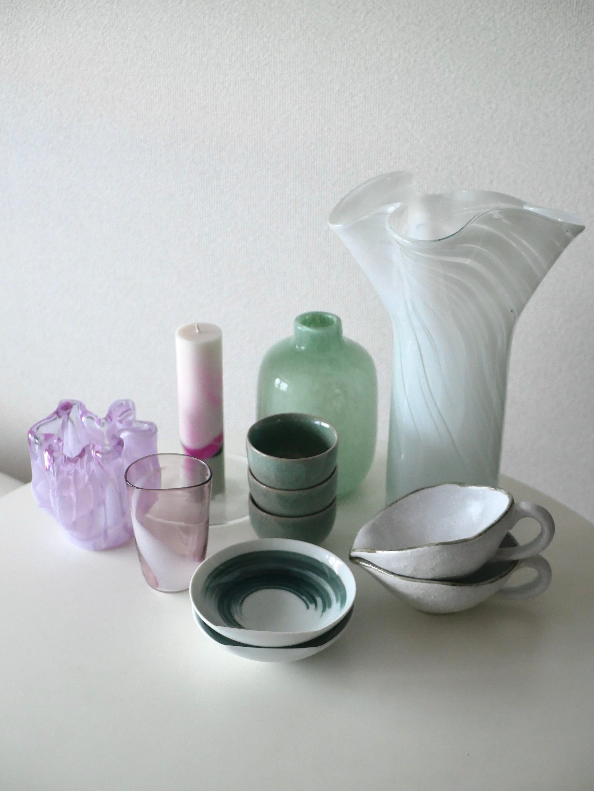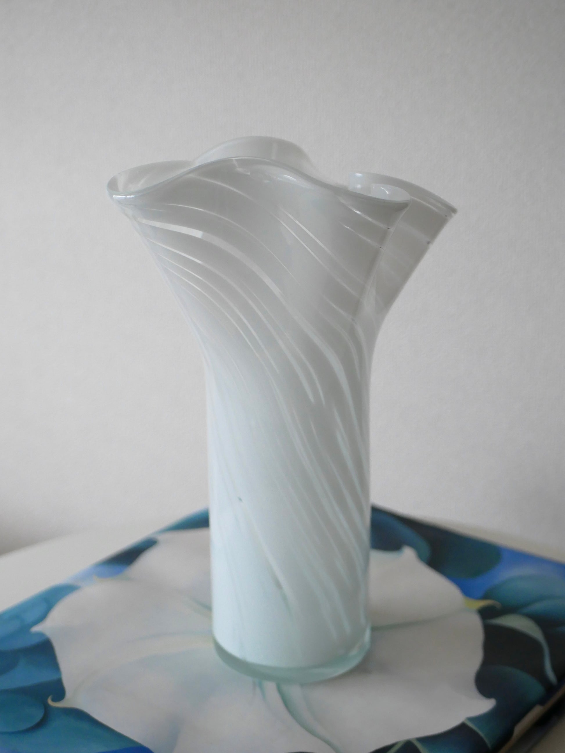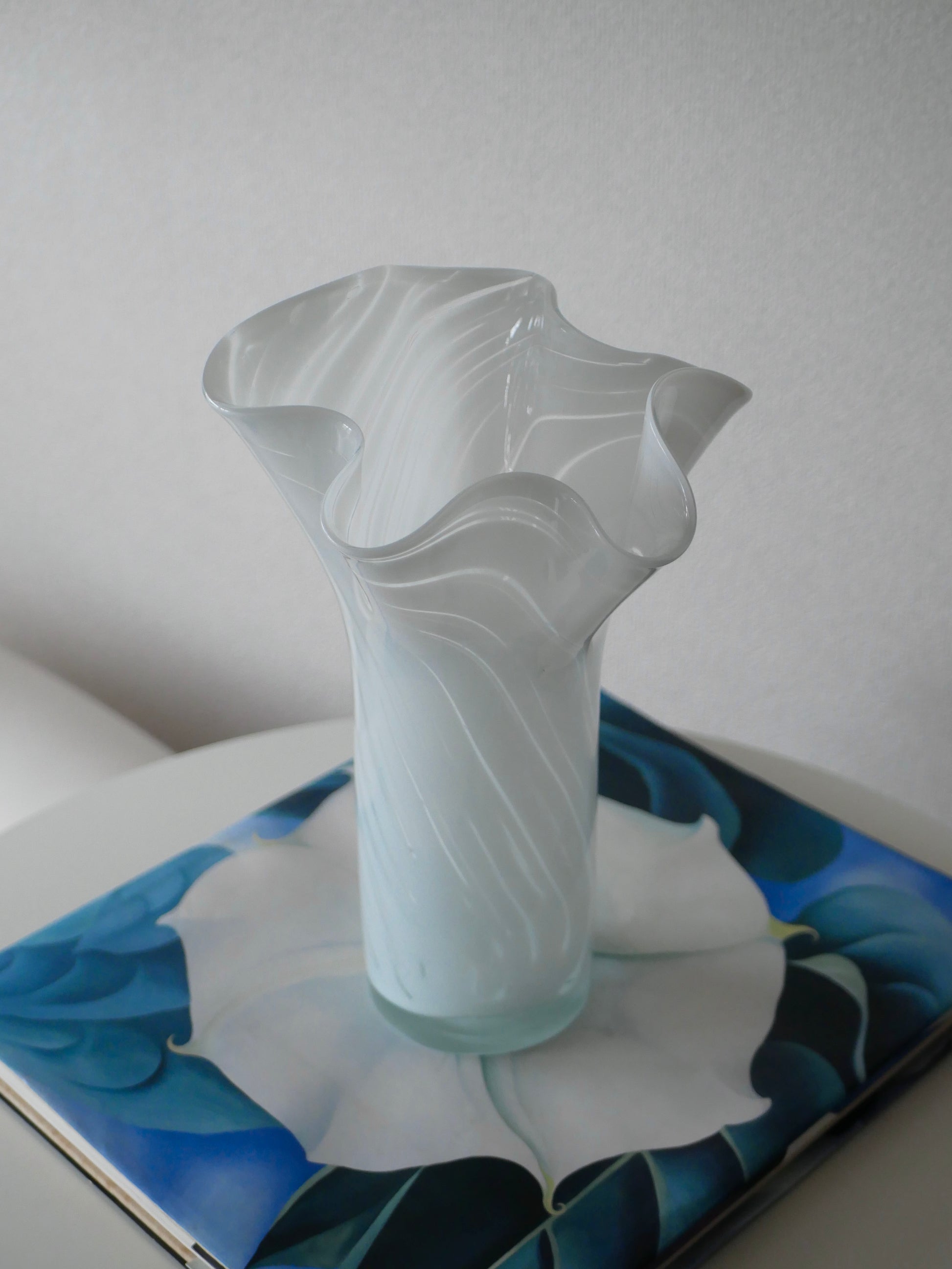 底の方は水色がかったガラスで、白とクリアのマーブル