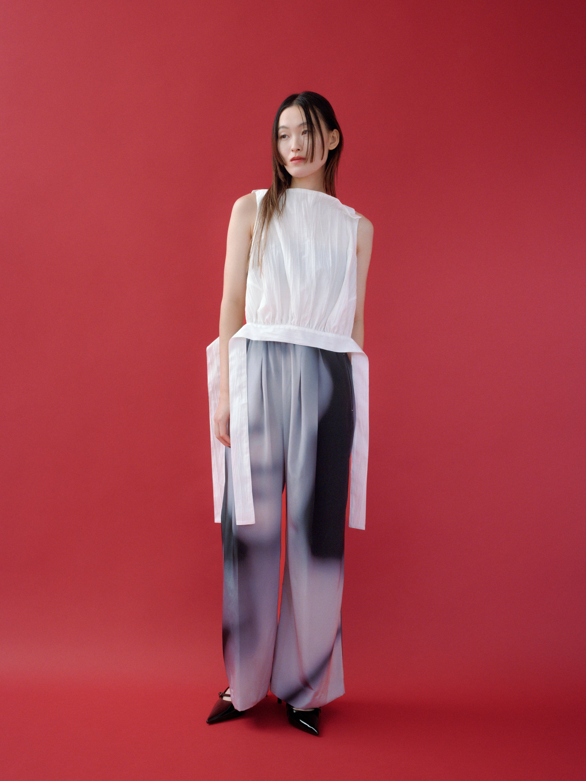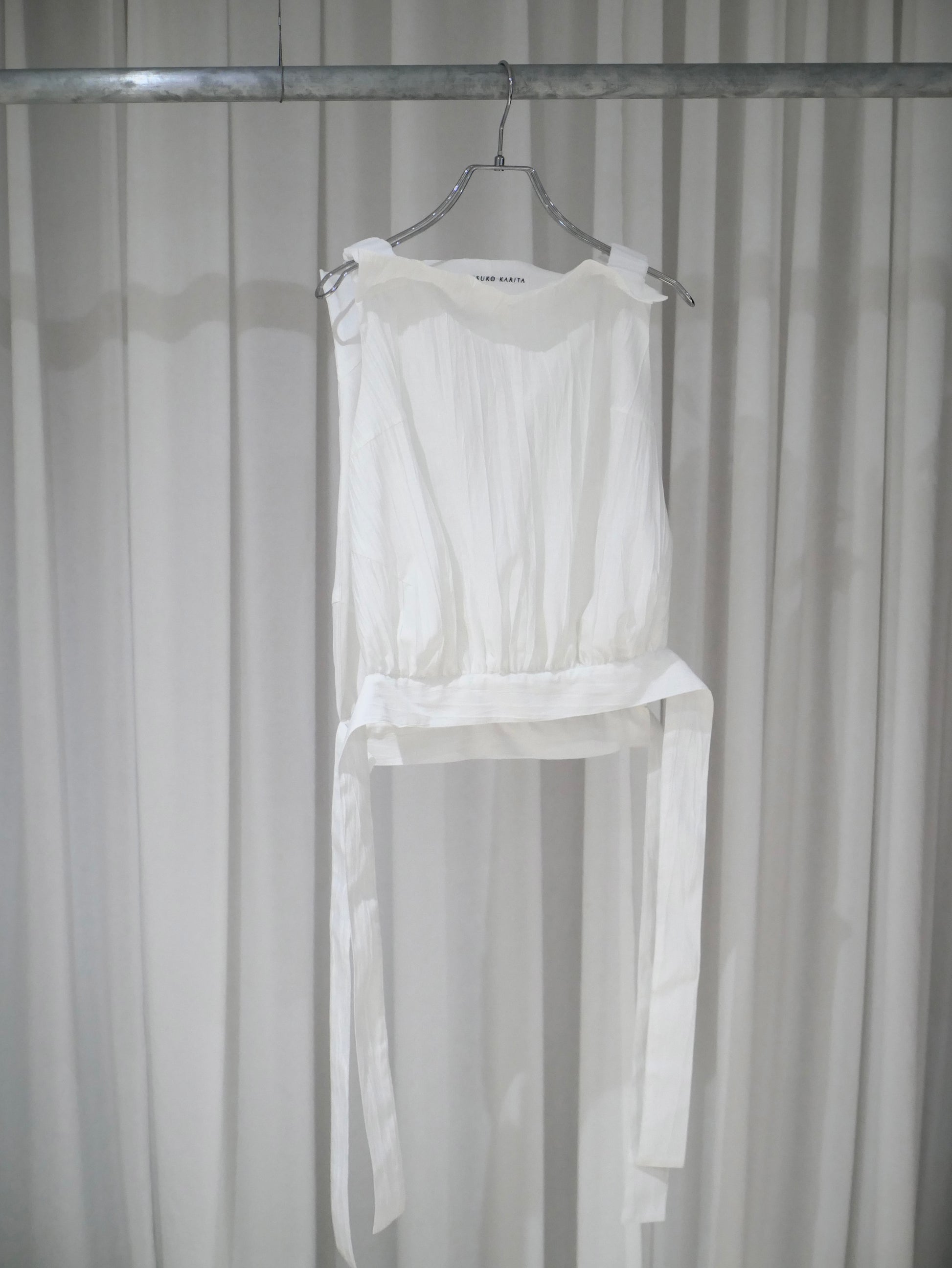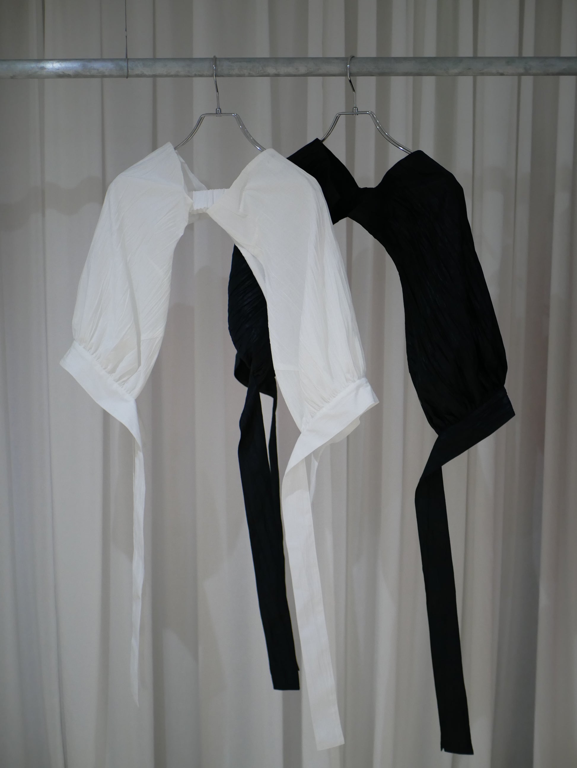 全額支払いトップス、お袖、腰に巻く、肩にかける、結ぶなど様々な方法・自分の解釈で自由に着用することができるアイテム。コレクションテーマに沿うように、正解がなく自身で答えを導くような。