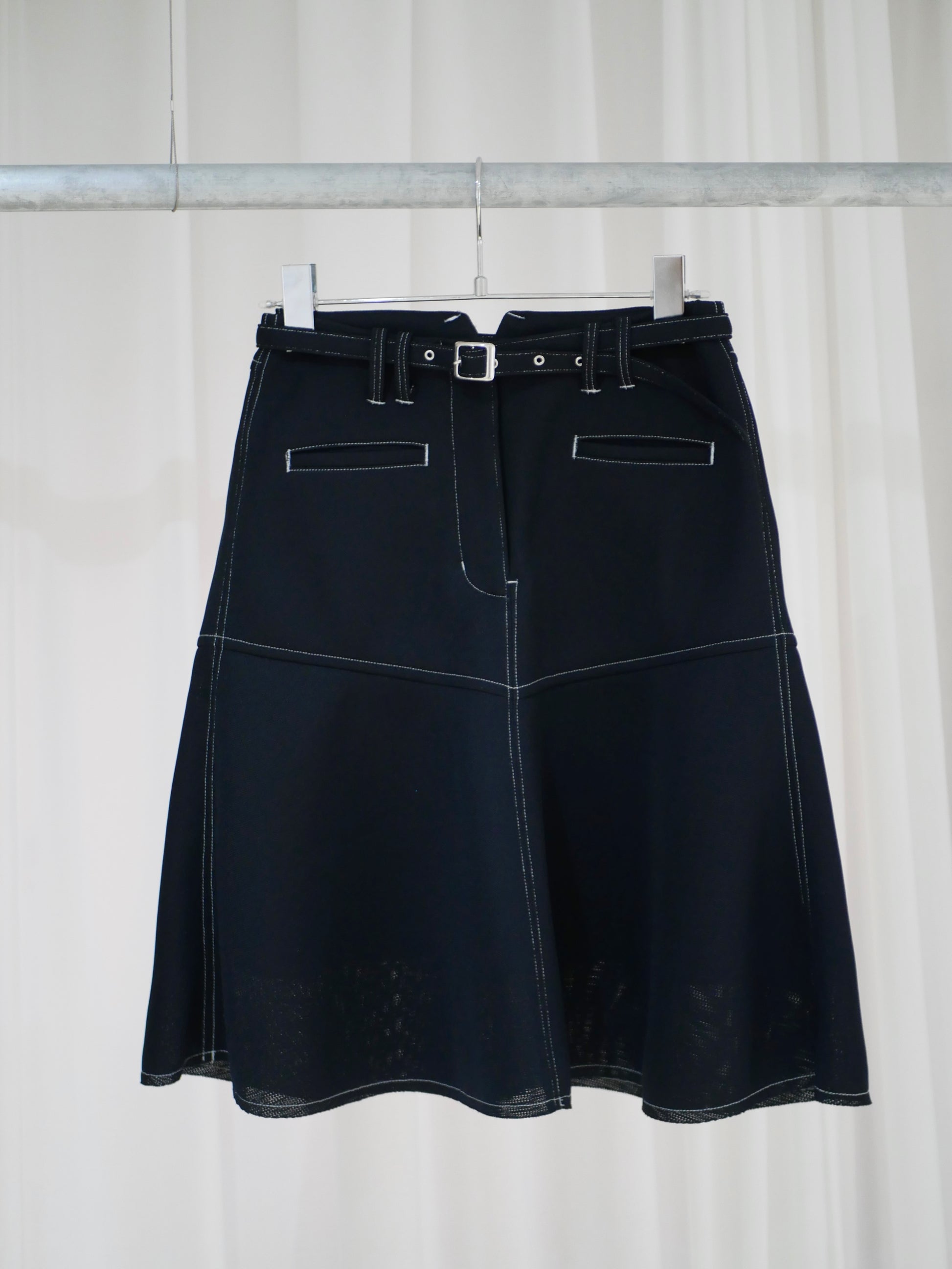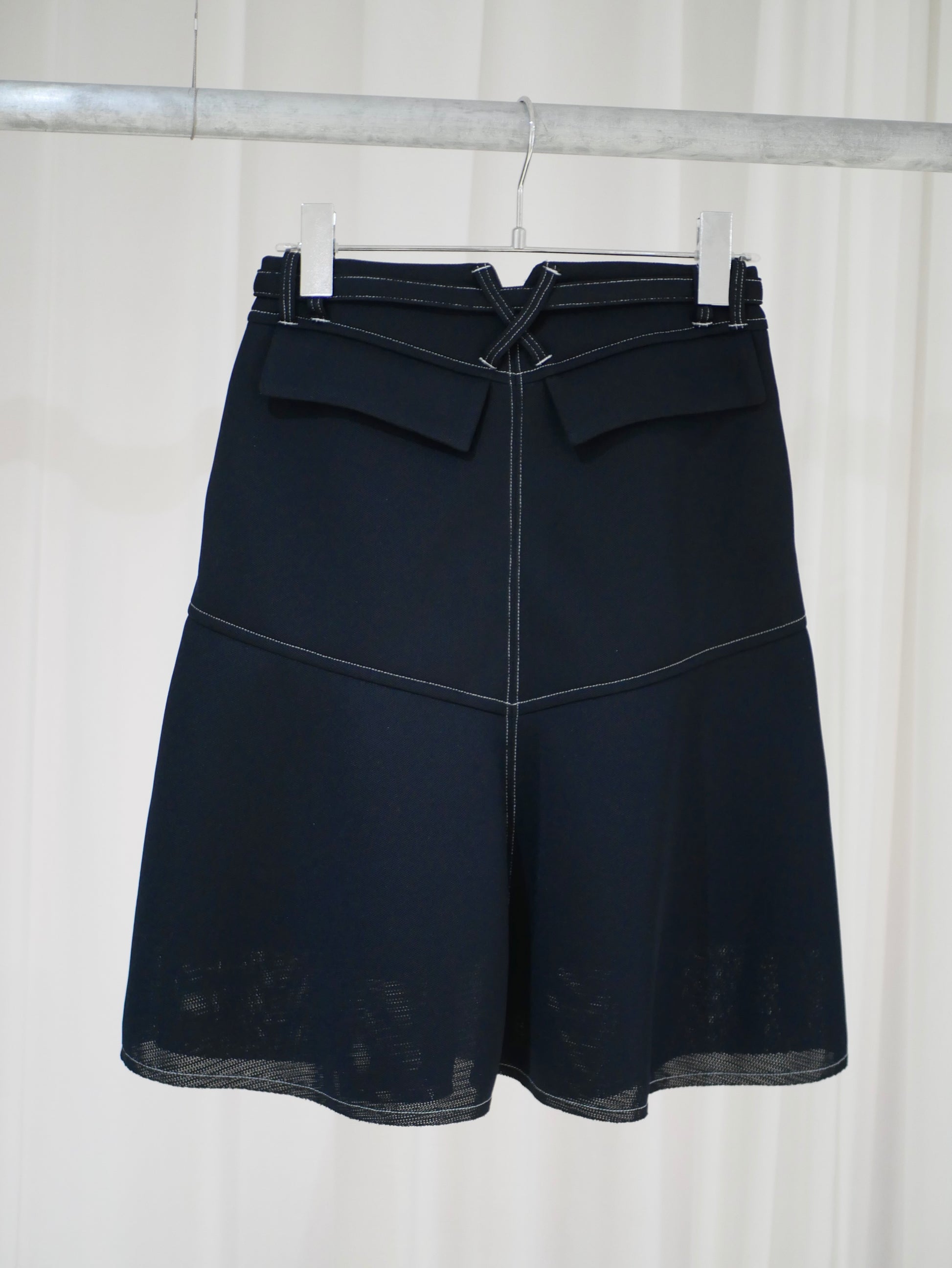 スポンジのような少し弾力のある層のメッシュ素材を用いたフレアミニスカート。